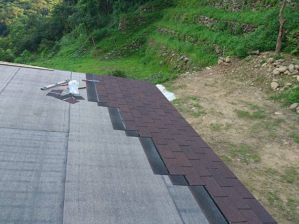 在屋頂的選擇,我也找了一陣子,原則上是希望不要有鐵皮下雨天的噪音,價格不能貴,可以自己維修和施工! 當然以品質來說陶瓦應該是最好的選擇,但是重量太重,運費和價錢應該也是很難買的下手! 在無意間看到小木屋上用的可樂瓦,上網搜了一下但是中文網站訊息真的很貧乏! 換用英文搜尋後果然所有資訊都有了,連製造商拍的施工教學影片也都有,看完馬上就確定...是這個了!