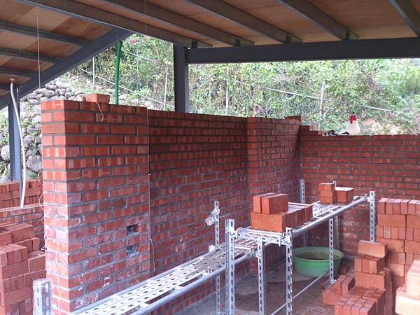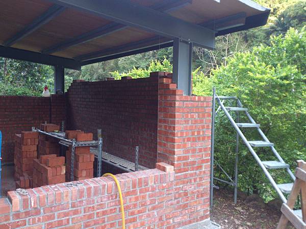 包H鋼柱子最難砌了,在室內砌完內層數層後,還要再跑到室外砌外層!
