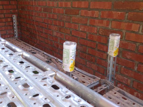 2. 保溫隔熱: 由於雙牆的兩層順砌中間有1cm左右縫隙留空,國中物理學過,當熱傳導,遇到不同介質時速度會變慢,尤其是空氣這種密度低的介質,我的磚牆大概就是這樣--> 室外--10cm磚--1cm空氣--10cm磚--室內 ,這樣的原理也類似保溫瓶! 像歐洲這種溫帶國家甚至在牆中間留5cm 左右空隙,塞入保溫棉,也是一樣道理!