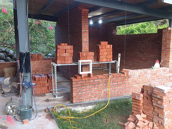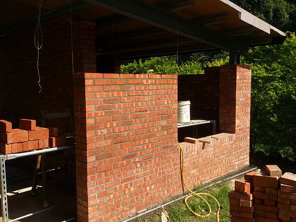 做到這裡是越來越有信心了,每天看到自己完成的部分也真是滿意的不得了! 雖然這樣說不太謙虛....其實一開始對水泥砂漿和磚的特性掌握的不好,也心急了點,所以前面一部分是做得沒有很滿意,尤其是最開始的幾層! 好在隨著經驗的累積,感覺上越來越遊刃有餘了! 到這裡應該砌了將近4000顆磚了吧!