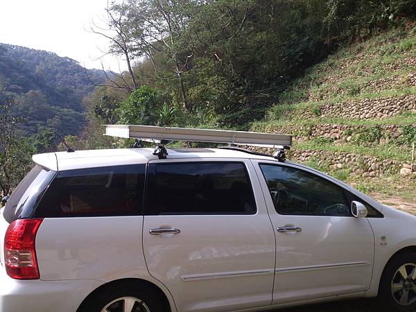 用我的老白加上行李架把窗戶載過來了! 這個行李架什麼都載,南方松,鐵管,C 形鋼....重量不要超過60kg 都ok! 當然載超長的要小心被開罰單...