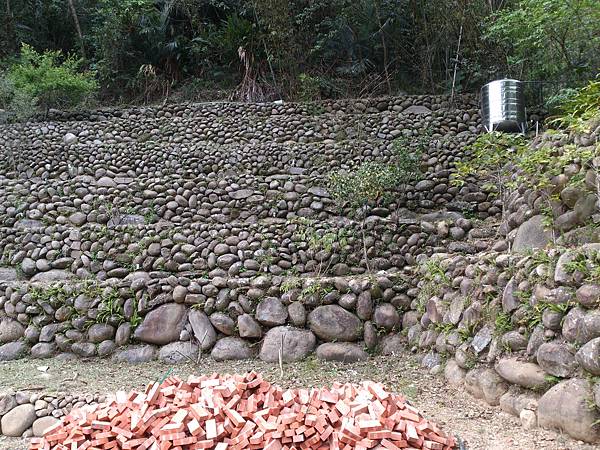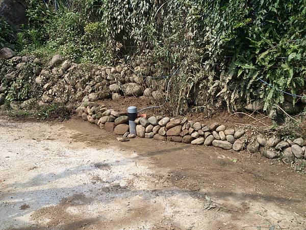 那堆廢土實在看起來很不順眼,當天下午就用石頭砌了一道矮牆當花台,一方面消化掉廢土,另一方面將井遮蓋住來修飾一下!之後花長大後井就幾乎看不到了!