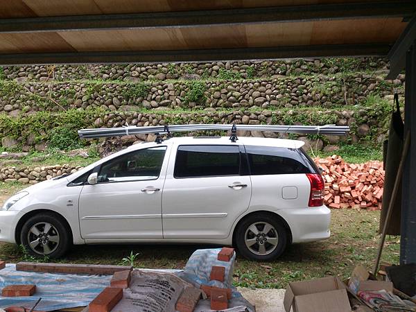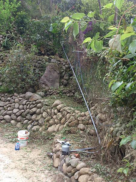 過幾天等水稍微乾淨點,開我的老白去材料行載了10幾支1" 水管和接頭回來自己配管,沿至圍牆上去一直到水塔!當然已經請憲哥幫我叫了一顆一頓的水塔!