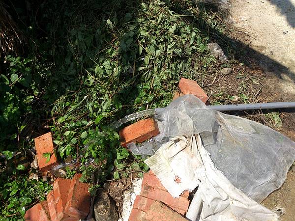 臨時水管接到我的果園測式出水!一開始水是黃黃的,正常!要打開馬達讓它一直將水抽出來.順便將井內的砂子帶出來!