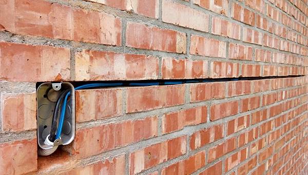 拖這麼久才動手的原因是一直在想怎麼搞,雖然早就有一些想法了,但是一直不確定可行性!困難點有二,室外到室內原有插座的鑽洞要30cm深....要先找到這麼長的鑽頭!後來也是去憲哥那才找到,順便借他那支有力的電鑽才鑽的過去,當然鑽的過程我也一直拿水平尺確認電鑽沒拿歪,果然順利鑽到BOX的開孔,一次就ok!再來就是磚縫間的開槽!因為我的磚縫比較大(約1.5cm) 所以才有機會將線路藏入,當然如果磚砌得歪七扭八想要開槽又不傷的磚就不太可能了!這也算是又找到一種施工法,只是搞鋼的那種!