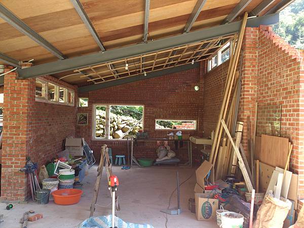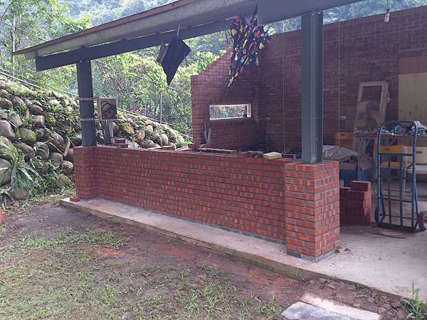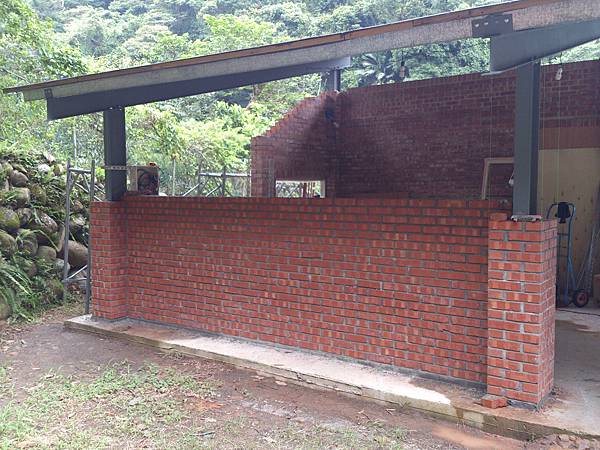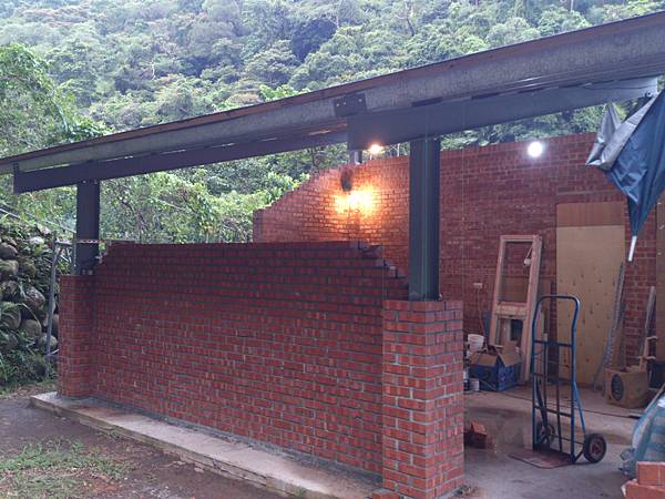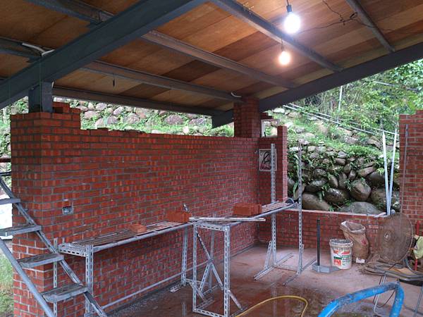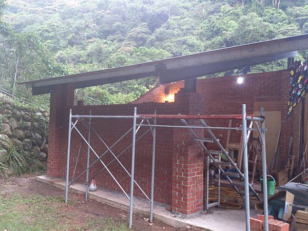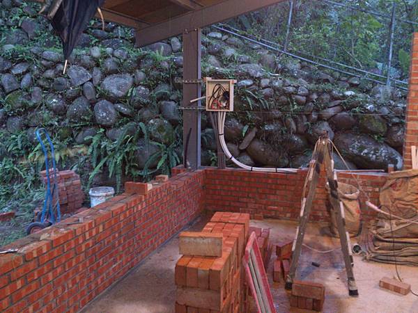 最困難的部分其實已經完成了,就是浴廁的那個部分!因為牆壁內充滿管線和有多面牆互相交錯要交丁,所以做起來更複雜! 廚房那面牆也是最高和最大的一面牆!自從搬進來後晚上自己一個人其實還有點可怕,方圓幾百公尺都沒住人,鄰居都假日才來,平日晚上就只有我一個人睡這邊!有時會聽到莫名的聲響,尤其這裡是山區又空曠….不過其實每種聲音都一定有合理解釋吧! 有時只是還沒找到罷了! 自己嚇自己的多,住久了就習慣了! 既使一個人夜晚也敢走去外面去!