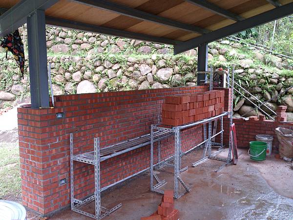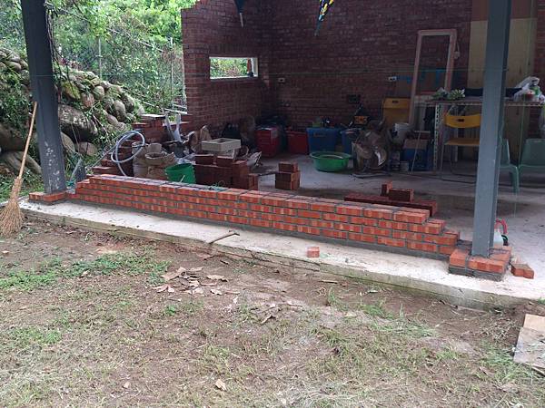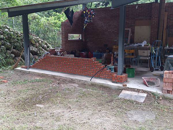 一樣砌上來呈階梯狀,等砌多層後再來砌兩端柱子,由於這是兩種不同工法所以砌完一種再換一種比較有效率!