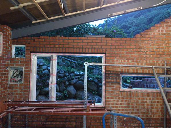 到這裡電箱都包起來了,牆也砌到氣窗的位置了! 電箱右邊也是一片景觀窗,用餐的時候可以看到戶外的綠意!我的窗戶都室低檯度的,離地60cm!
