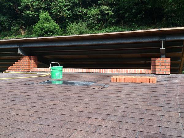 屋頂上這面牆要裝氣窗,柱子要包起來,中間的位置就是氣窗!