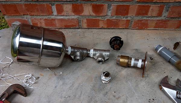 我在淘寶買了整組套件包含不銹鋼壓力桶,逆止閥,四通和壓力開關,可是品質很差...用了一年後壓力開關常誤動作,銅四通也裂掉漏水! 用了一年了也了解原理了,所以就買了2個不銹鋼的3通來取代原來的銅四通! 壓力開關就拆舊的加壓馬達上的來用,另外再買四分轉3分的連接頭來連接壓力開關! 下面照片是新買的不鏽鋼3通搭配之前淘寶買的零件!