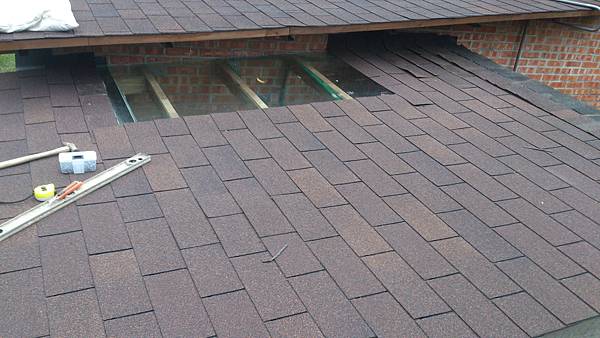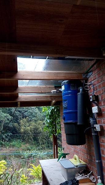 屋頂也是用可樂瓦, 之前訂玻璃時廠商做錯尺寸送我一塊,終於找到地方放了! 開了一個天窗來採光,也省了夾板和可樂瓦的錢!
