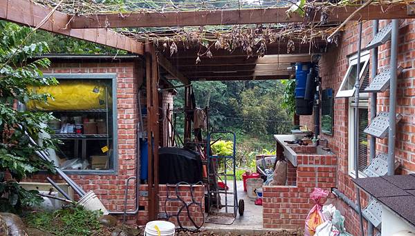 下雨天我的衣服就晾在洗衣房內,有太陽時可以晾在瓜棚下....如果沒種瓜的時後!
