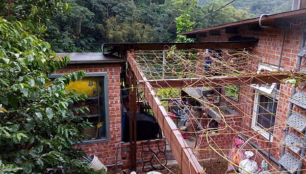 本來工具間和臥室上方有拉網種了一季苦瓜, 未來屋頂搭起來後還要另外找地方建一個瓜棚了!