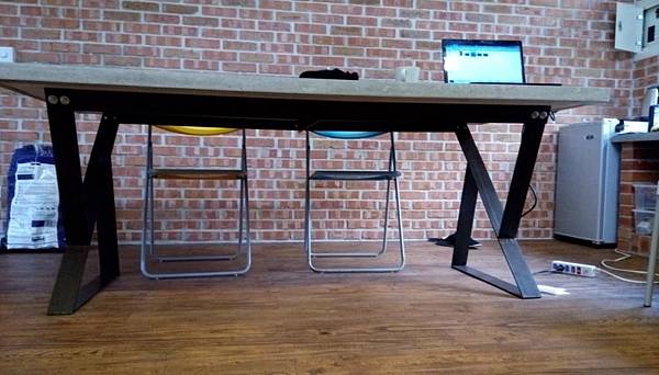 這張桌子目前有個缺點.....左右容易搖晃,扁鐵太薄,彈性太好了吧! 不過我的桌腳是可拆式的,改天再加橫桿來補強應該就會改善!